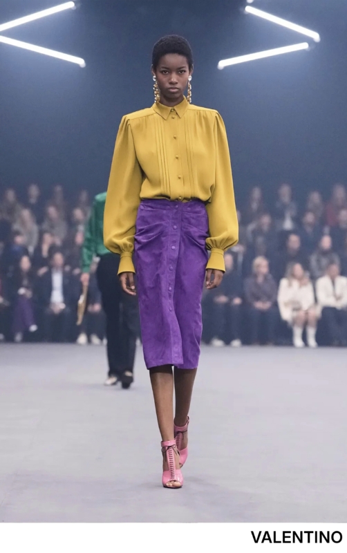 先シーズンに引き続き、ビビッドな色使いがトレンドになる予感。アレッサンドロ・ミケーレ率いる新生ヴァレンティノは、「ファイアーフライズ(ホタルの光)」をテーマに、個性を輝かせるメッセージを大胆なパレットに落とし込んだコレクションに。印象的な色合いはビジューや刺繍アイテムとも好相性。装飾性の高い小物と合わせて、ほのかにヴィンテージムードを漂わせ、ミステリアスな魅力を演出するのもおすすめ。ヘアカラーと合わせて、自由な配色を楽しみながら、個性を引き出すスタイルへ。