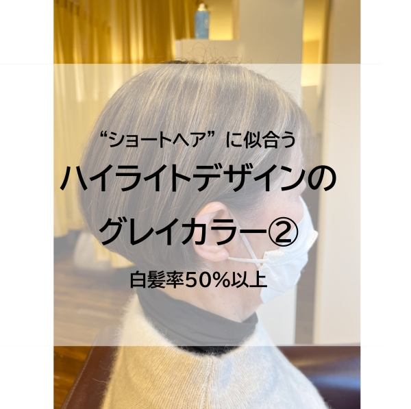 ショートヘアに似合うハイライトデザインのグレイカラー②(白髪率50%以上)