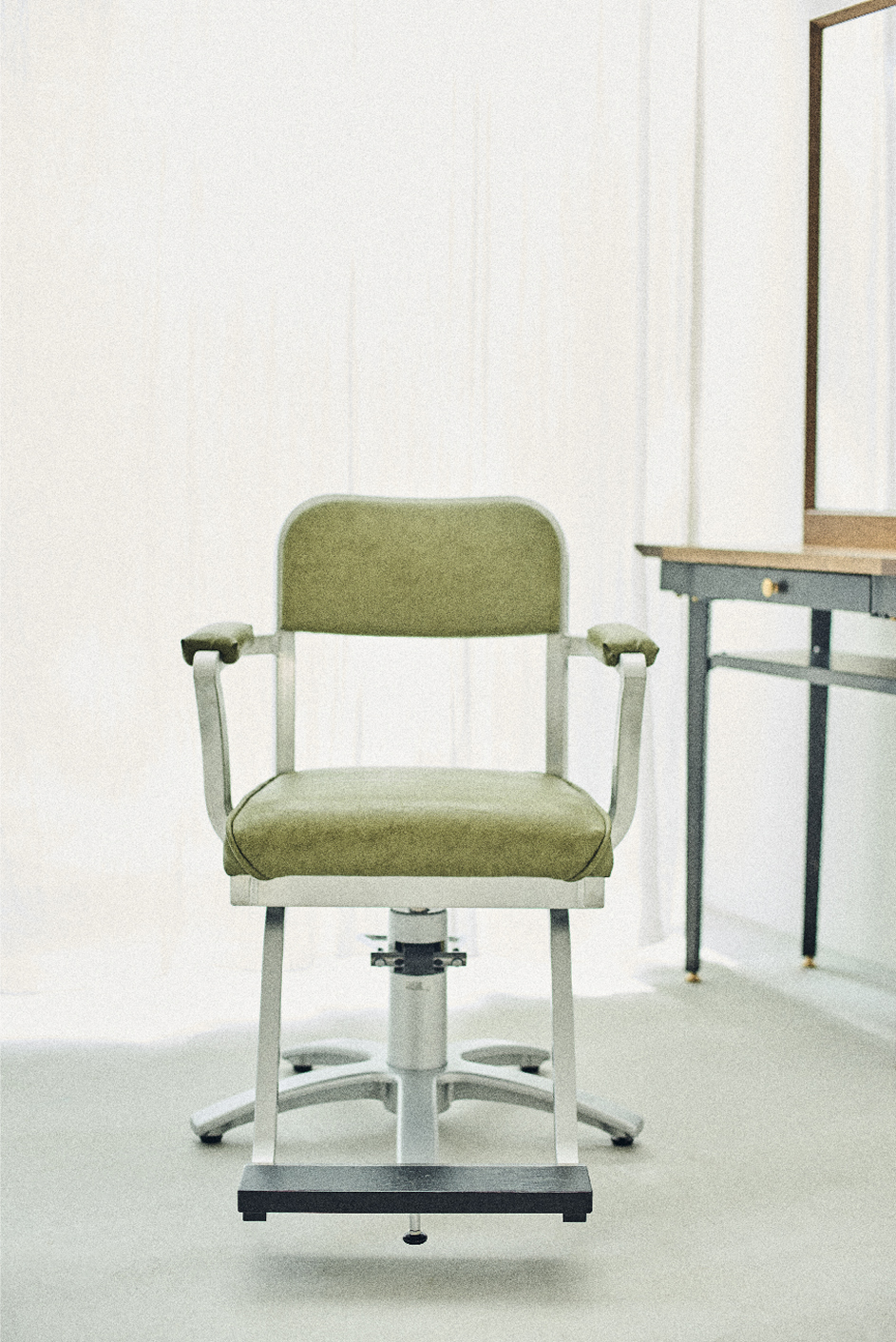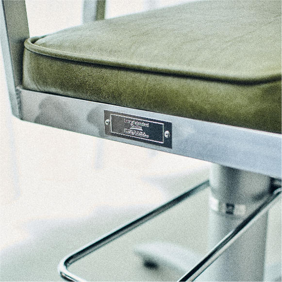 ミニマルなフォルムと無機質なアルミの縁取りが存在感を放つアメリカンダイナーを想起させるモデル。あえて無加工の傷や溶接跡を残したフレームとヴィンテージ感のある張り地が、クラシカルでクールな印象に。トレンドのグリーンとスタイリッシュなブラックの2種類。