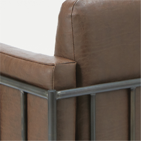 本革のような風合いに仕立てた ヴィンテージ風の張り地は、洗練された都会的な表情を生み出す。