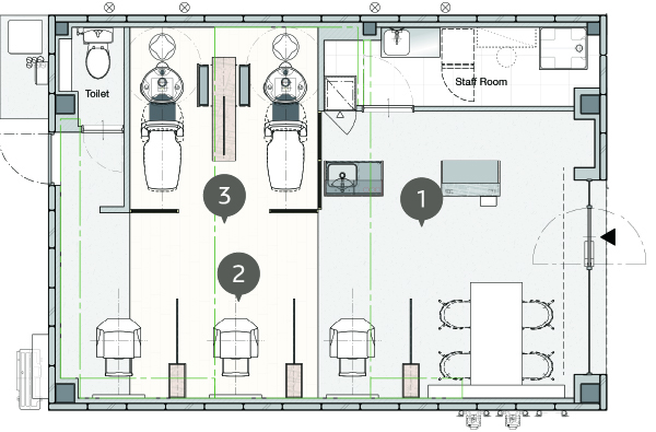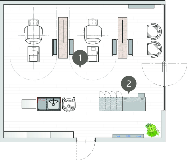 弊社理美容機器とサロン専用家具「SALON DESIGN FURNITURE」を使った最適なレイアウトプランを作成し、ご提案いたします。
