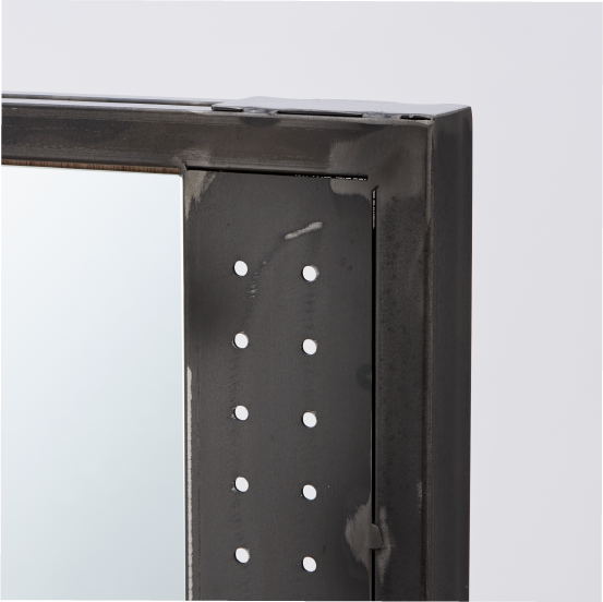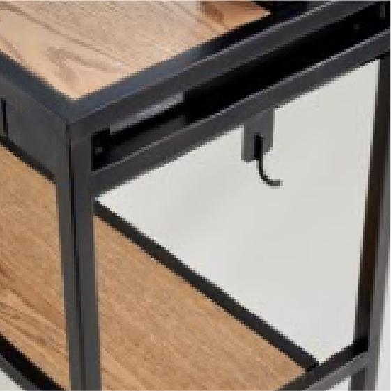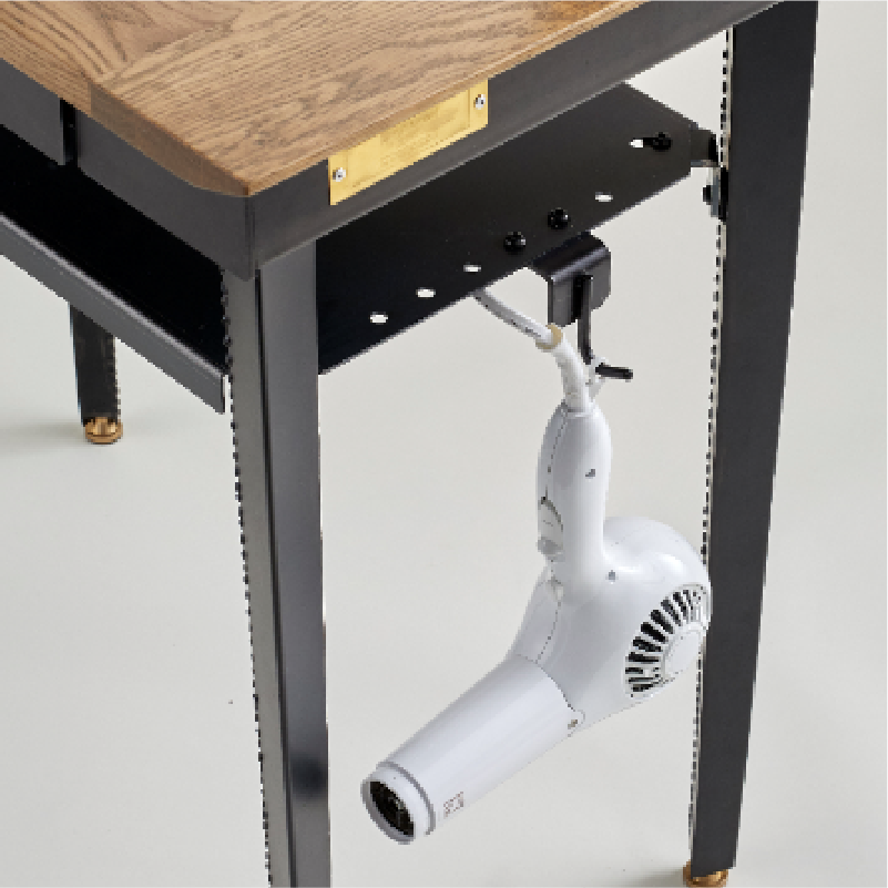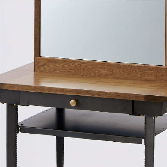 ブルックリンスタイルを追求した、無骨なインダストリアル感のあるアイアンベースの自立式ミラー。スライドテーブル、ドライヤーフック付き。