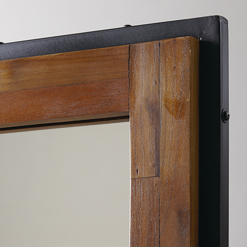 チーク材をランダムに貼り、アイアンフレームで囲った異素材の組み合わせが斬新で個性的な雰囲気をかもし出すミラー。ユニークかつインダストリアルなテイストは、ナチュラルやヴィンテージといった幅広い空間に対応可能です。