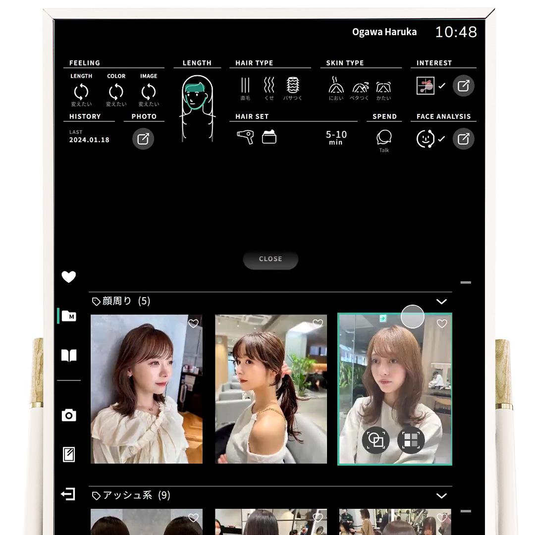 「カウンセリングでは、自分で作ることができる “マイフォルダ”という機能をよく使っています。得意なスタイルの画像をミラーに表示できるので、お客様のなりたいイメージに沿いながら、自分の強みを活かしたスタイル提案に繋げられています。」