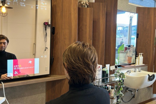 お客様に合わせた“おすすめ情報”をミラー下部に画像や動画で表示し、自然と会話が生まれるきっかけに。また、スタッフの手が空かなくても紹介するタイミングを逃しません。