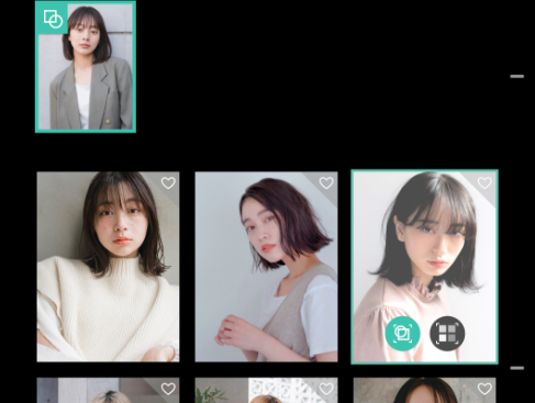 1枚のスタイル画像から、「髪型」と「色」が類似した画像をそれぞれ検索。デザイン決定に向けて、言葉では表現しにくい細かなニュアンスを掘り下げます。