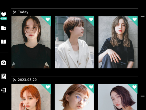 お客さまの“お気に入り”を溜めていくフォルダ。ホームカウンセリングや来店時に選択したスタイル画像を一覧で見ることができ、なりたいイメージを具体化します。