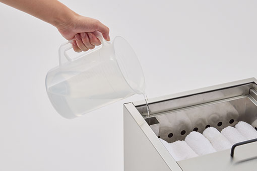 製品上面から水を注ぐことで給水が可能。営業中の給水も簡単に行うことができます。