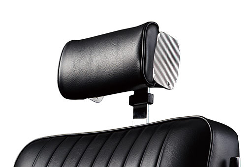 8段階の高さ調整が可能な枕を装備。着脱も可能で、リクライニング時には取り付けて、カット時には取り外すことも出来ます。お客さまの身長や、サービス提供時の姿勢に応じて高さ調節が可能で、ユーティリティ性の高い機構となっています。
