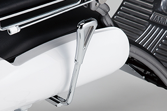 レッグレスト部の抜け感のある格子が特長で、鋳物を一品一品研磨して仕上げていた当時の部品のイメージを、ロストワックス製法で再現した重厚感のあるフレームです。