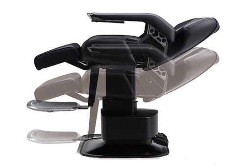 背もたれのリクライニングと連動し、レッグレストが上昇するモデルが45万円から実現。施術時のお客さまの快適性を高め、提供サービスの幅を広げます。