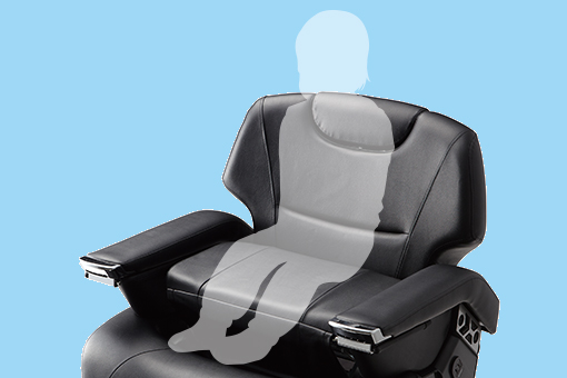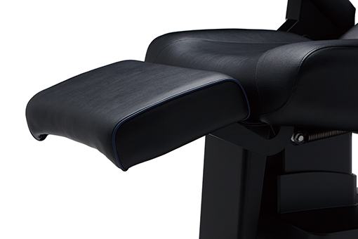 シート座面にはバケット形状を採用。左右に膨らんだ座面がお客さまを優しくホールドし、ゆりかごのように包み込まれる座り心地を実現しました。さらに、シートの張り形状やクッション素材などにもこだわり、長時間の施術でもお客さまに快適にお過ごしいただけます。
