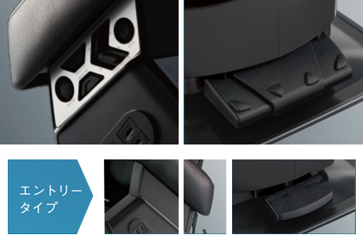 エントリータイプは手元右側に、それ以外のタイプでは手元両側・足元に電磁式ロックを搭載。