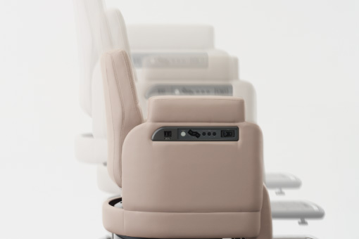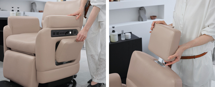 ショックレスユニットを採用し、イスの昇降時の衝撃を緩和。なめらかな動きがお客さまのリラクゼーションを高めます。
