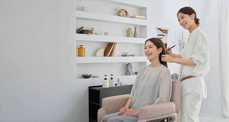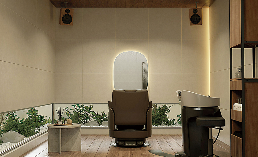 個室・半個室での定点サービスにふさわしい多機能チェア「EQUA」が、サロンタイムをより心地よく、満足度の高いひとときへ導きます。
