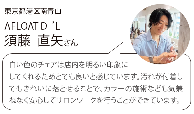 「サロンのイメージに合わせて明るい色のチェアにしたいけれど、汚れが気になる」という声にお応えしました。