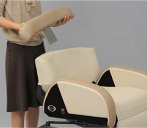 背モタレを取り外せ、低身長のお客様も同時施術が可能な多機能チェアです。
