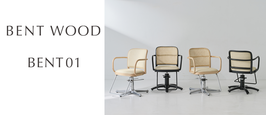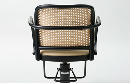 抜け感のある軽やかで風通しのいいラタン張りの背もたれが、背面から見ても曲木ならではの美しさを際立たせています。流行に左右されない普遍的なデザインが、美容室の空間に木ならではの上質さをもたらします。