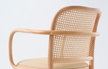 極限まで曲げ加工を施したアームは、座ったときに手が置きやすく、計算された背もたれのカーブは身体をラクな姿勢で受け止めてくれます。流れるような曲木特有の優美なラインが、造形的にも機能的にも魅力的なチェア。