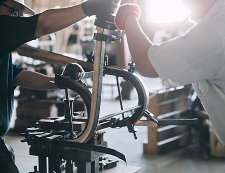 熱を加えながら木に曲線を生み出してく曲木は、秋田に受け継がれる伝統的な技。木の柔軟性を知りつくした職人が無垢材をひねりあげ、立体的な造形をつくり上げていきます。100年以上受け継がれる比類なき技術が生み出す唯一無二の機能美です。