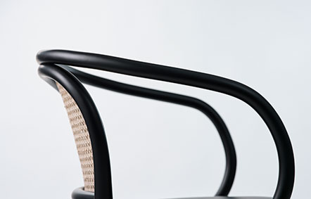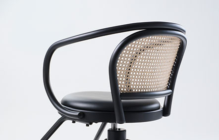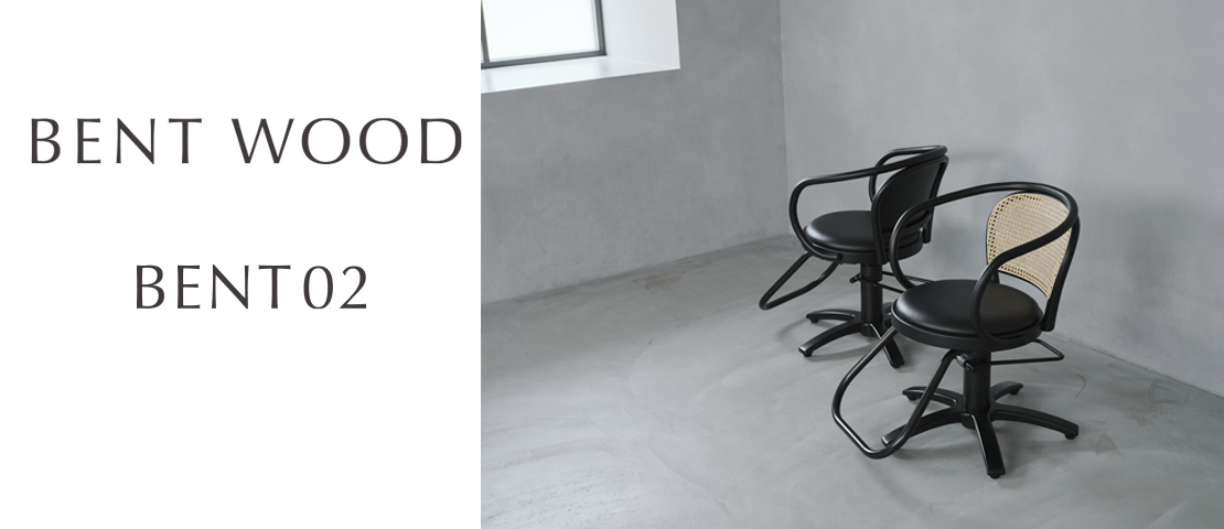 抜け感のある軽やかで風通しのいいラタン張りの背もたれが、背面から見ても曲木ならではの美しさを際立たせています。流行に左右されない普遍的なデザインが、美容室の空間に木ならではの上質さをもたらします。