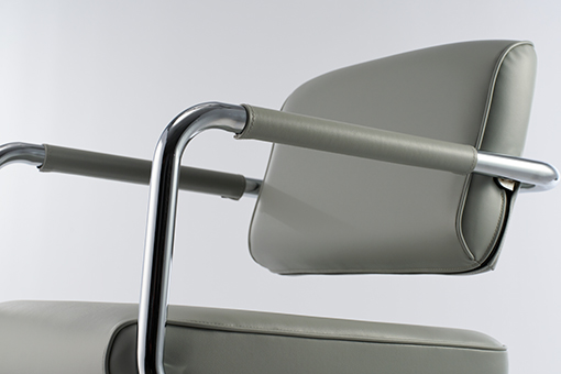 ひとつながりのパイプで構成された軽やかなデザイン。背面のしなやかなたわみが、自然な姿勢を支えてくれる。