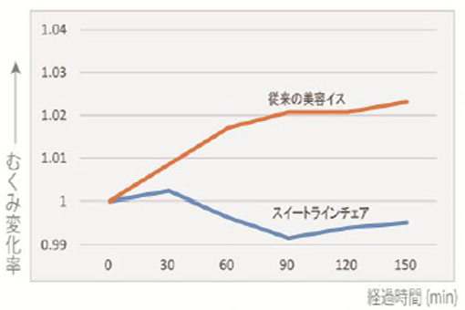SUITEタイプのチェアでは時間が経過しても「むくみ変化率(※2)」にほとんど変化が見られませんでした。