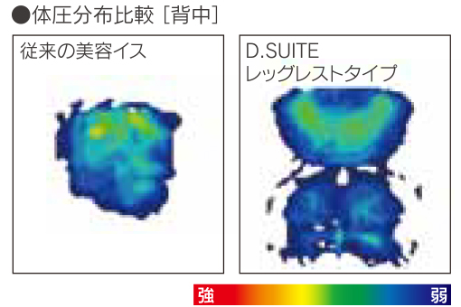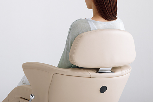背もたれを高くして快適性を向上させつつ、厚みや形状を工夫し、視線と鏡を正対させる構造にすることで、従来と変わらない施術性を可能にしました。