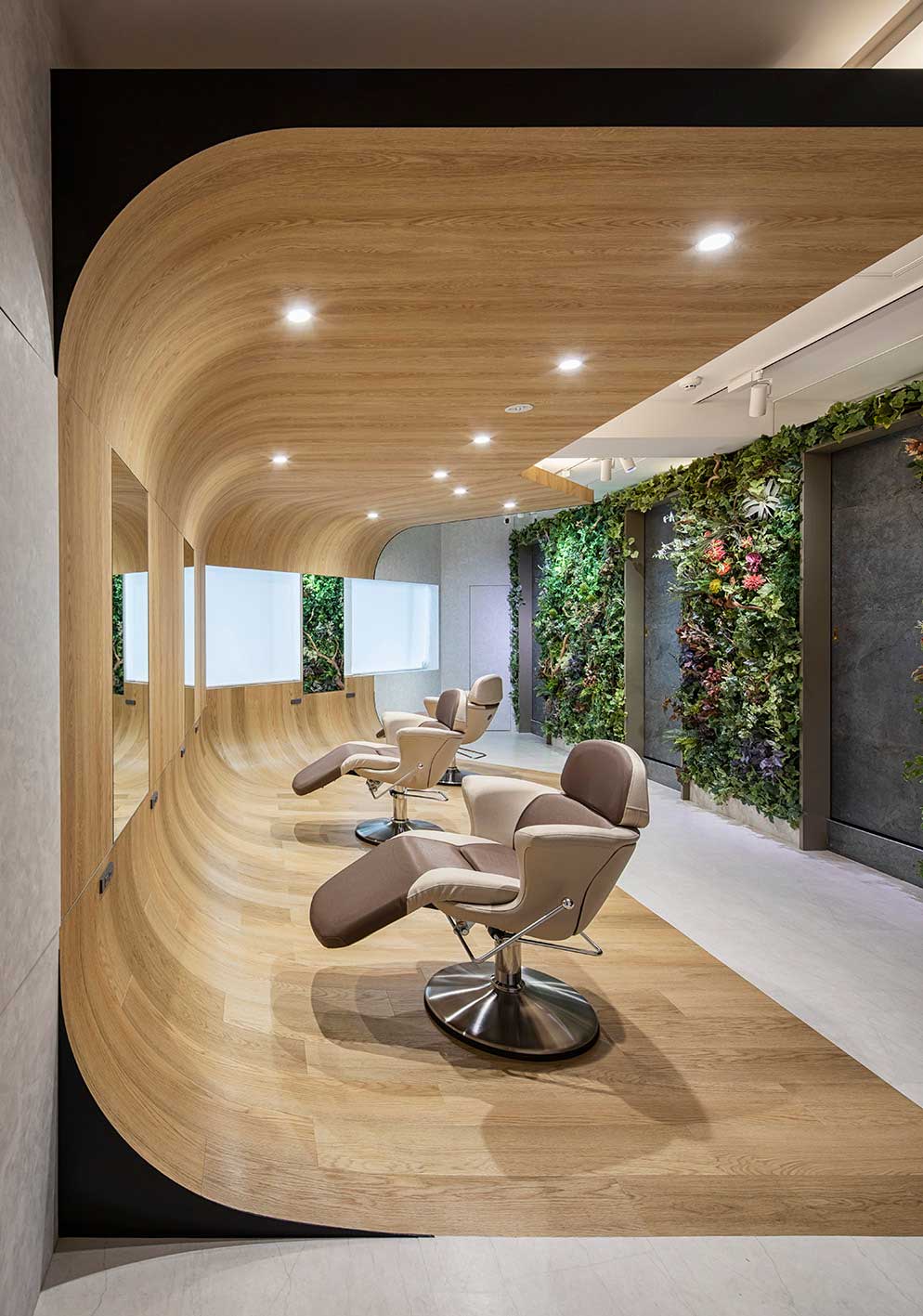 これまでのスタイリングチェアにある構造、寸法などを一新。施術性はキープしながら、腰から下を寝かせた寝椅子のような自然な形状によって、時を忘れるほどの快適性を叶えました。