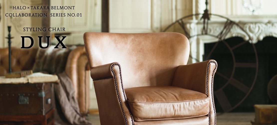 ヴィンテージの薫り高き英国家具ブランドHALOとのコラボレーションシリーズ。英国のアンティークチェアをモチーフに、2種類の本革をセレクトした存在感あるフラッグシップモデル。上質なアンティーク空間を演出します。