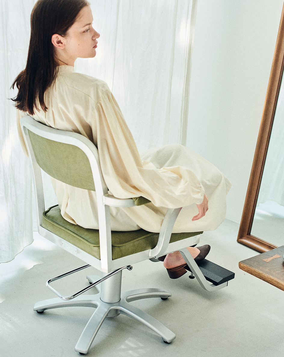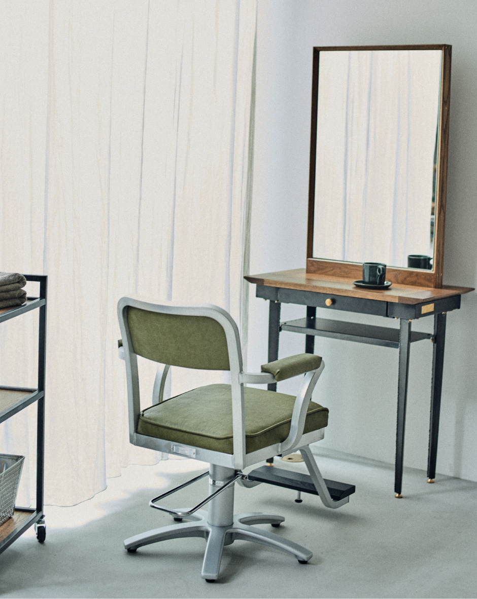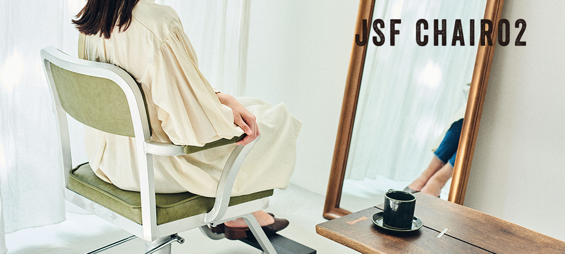 journal standard Furnitureとのコラボレーションシリーズ。ミニマルな形状でありながら、アルミ素材の質感が存在感を放つアメリカのダイナーを想起させるモデル。アルミのフレームとヴィンテージ風の張り地が、懐かしさと温かさ、そして新しさをもたらす。