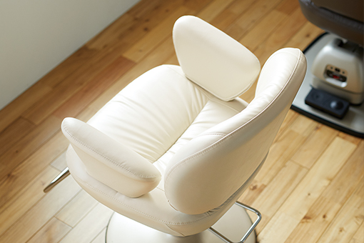 スタイリストがアプローチしやすいよう全体に角の無いラウンドフォルムを採用。背もたれや手すりの形状にもこだわり、施術性の良さと心地良さの両立を実現しました。
