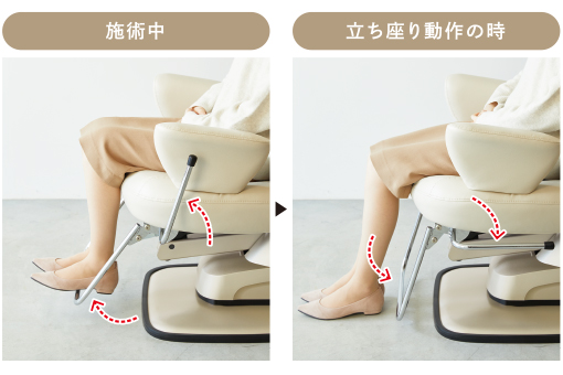 レバー操作でステップがチェアベース側に移動し、お客様に安心して立ち座りいただけます。