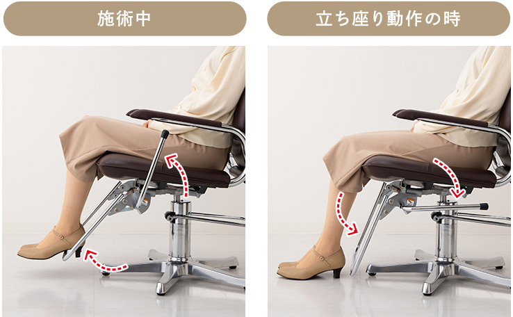 レバー操作でステップがチェアベース側に移動し、お客様に安心して立ち座りいただけます。