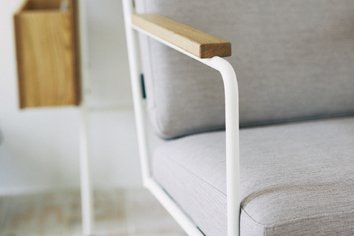 シンプルなクッションとフレーム、木材を組み合わせた#W01。
