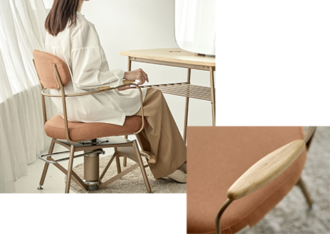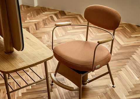 家具椅子をイメージさせる専用チェアベースを新開発。家具らしさを演出しつつ、昇降機能も兼ね備え、デザイン性と施術性を両立させました。