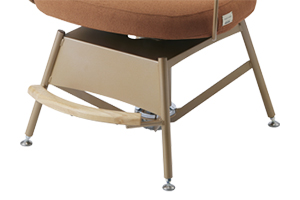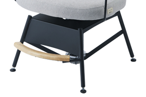 ステップをチェアベース側の控えた位置に設けることで、乗り降りの際に邪魔になりません。更に座面高も通常より低く設定し、床に足を着けたまま落ち着いて座ることができます。