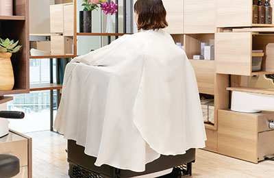 首留めを左寄せに配置。ロングヘアーカット時のシザーの引っ掛かりを軽減し、スムーズな施術をサポート。