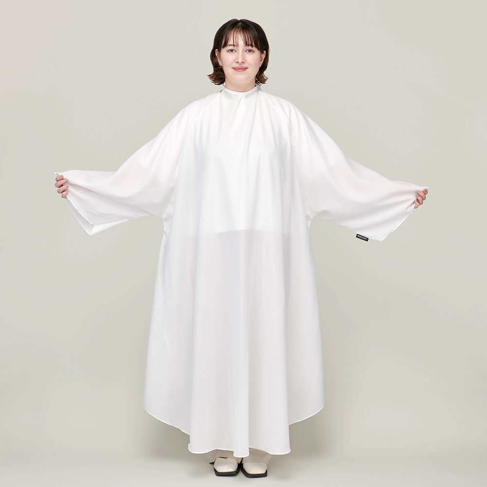 | サイズ | 前丈:128cm、後丈:96cm、袖丈:78cm 胴回り:270cm(脇下基準) 首回り:約30~54cm(面ファスナー2cm装着時) 襟高さ:約1cm、襟部分つまみ:約1cm |