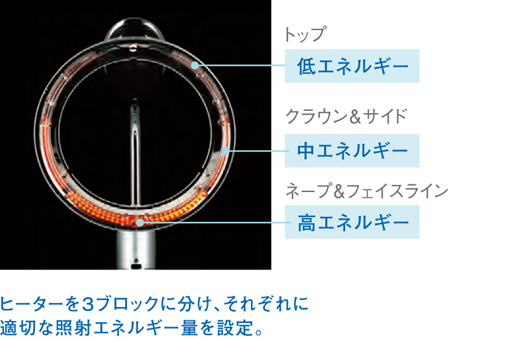 遠赤外線促進器。スピーディ&照射温度コントロールが自在の高効率カーボンヒーター。ヘアデザインの可能性を広げます。