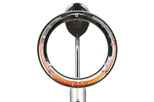 電源をONにするとリングが赤く輝き、一定の温度に達すると消灯します。温度が下がると、温度を上げるのに連動してリングが点灯します。