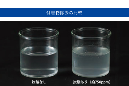 炭酸泉発生機。湯量を変えてもメニューに適した濃度を自動コントロールする機能を搭載しました。
