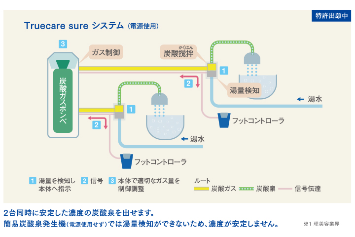 理美容業界初、湯量を変えてもメニューに適した濃度を自動コントロールする機能を搭載。
