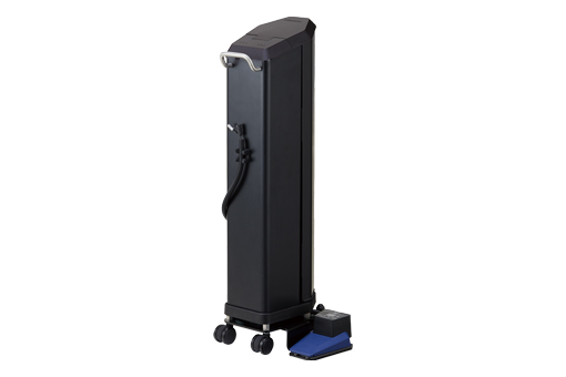 足元で炭酸モードの切り換えができるフットコントローラを採用しました。シャンプー中、手を止めることなく施術可能です。また、施術時間を設定できるタイマー設定機能、炭酸ボンベ交換時期を知らせてくれるアラート機能も搭載しています。