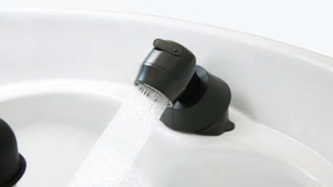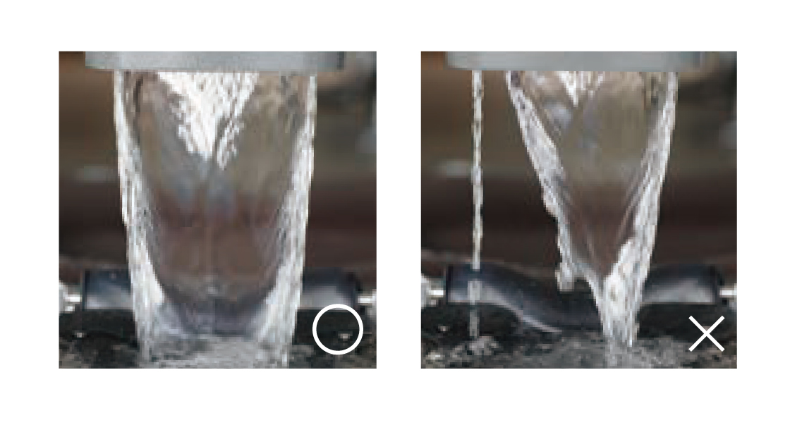 ①きれいな滝状吐水をするためには、8.6L/分以上の湯量が必須になります。湯量が不足すると、 お湯の当たり方や水流音が変化し、頭浸浴本来のパフォーマンスを発揮できません。 ご使用のシャンプー台の出湯量を事前にご確認ください。