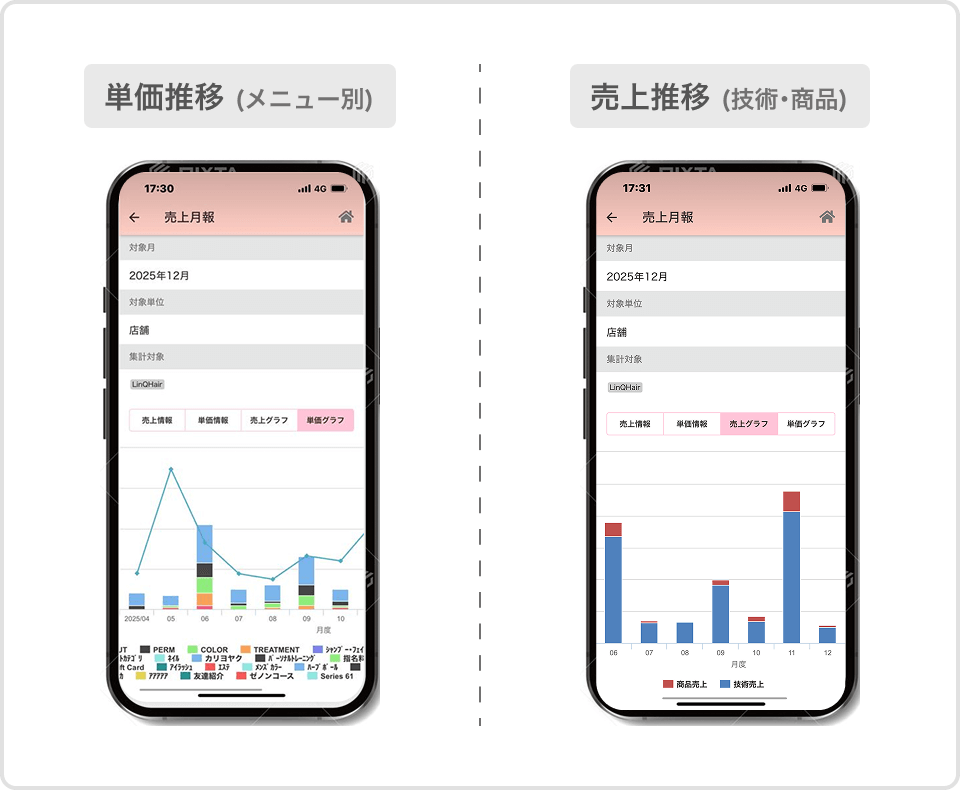 多くのサロン様と向き合い続けてきたタカラベルモントが、現場のリアルな声を集めて開発しました。スタッフ別・メニュー別の売上管理など、理美容室だからこそ必要な情報を簡単に管理できます。