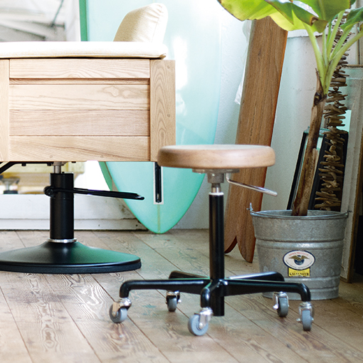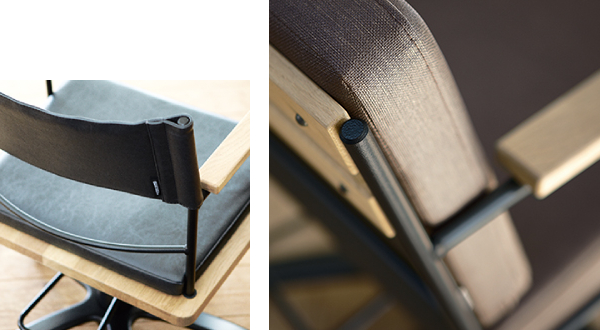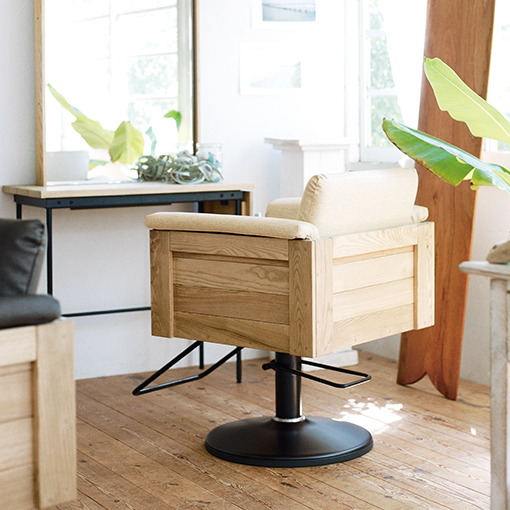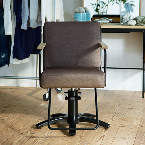 塩ビ素材ながら、ファブリック特有の素朴な風合いを再現した合成皮革を採用。サロンワークに適した清掃性や耐久性と、柔らかな風合いや色味を両立させた自信作です。