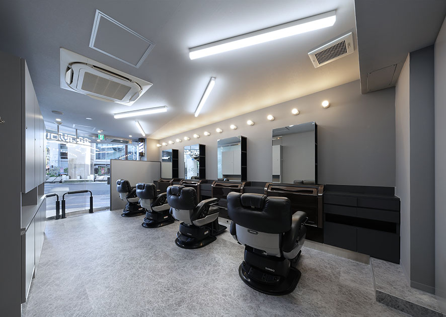 人工大理石とツヤのある表面材が生む、上質で温かみのあるデザイン。まるで改装したかのようにサロンを一新できます。