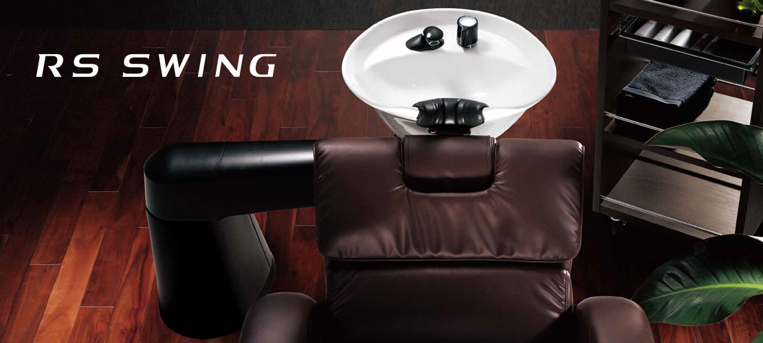 スイング式だから、カットからシャンプーへ、カラーリングへ、と瞬時に施術チェンジできるRSスイング(RSS)。リアシャンプーの施術性はそのままに、ミラー前でさまざまなメニューがこなせる快適性は、お客さまにさらなるリラクゼーション効果を産みだします。