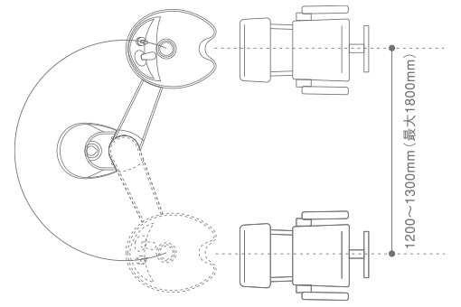2つのセット面をスイングしながらスムーズに施術チェンジができる、定点サービス用のリアシャンプー機器。